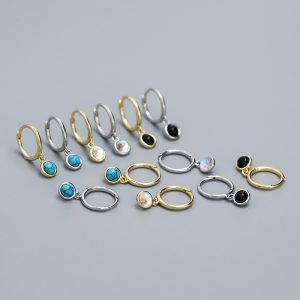 S925 Sterling Silver Pendant Ear Clip Synthetic Moonstone Agate Blue Turquoise Earrings Women